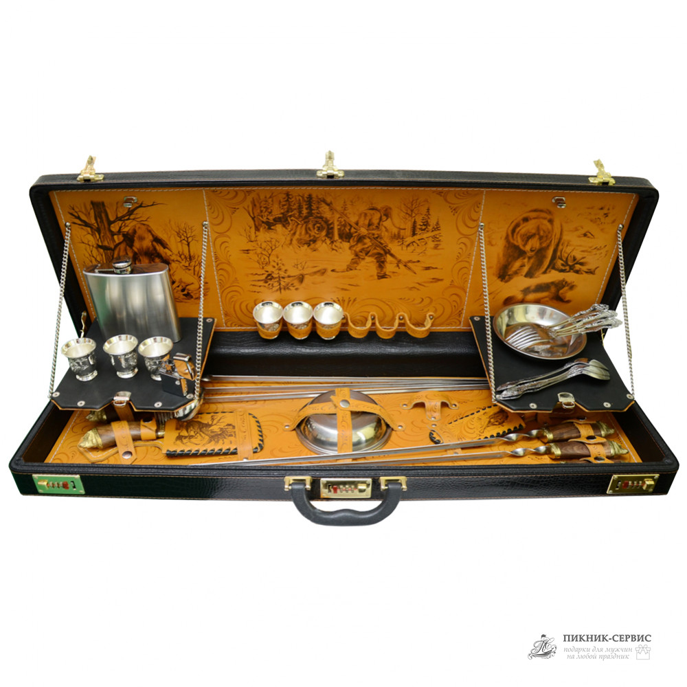 Встроенные откидные полки позволят выпить и закусить даже "на коленке". Все продумано и предусмотрено: каждая деталь прочно зафиксирована на своем месте, и при сборе набора сложно что-либо забыть - пустое место сразу бросится в глаза.